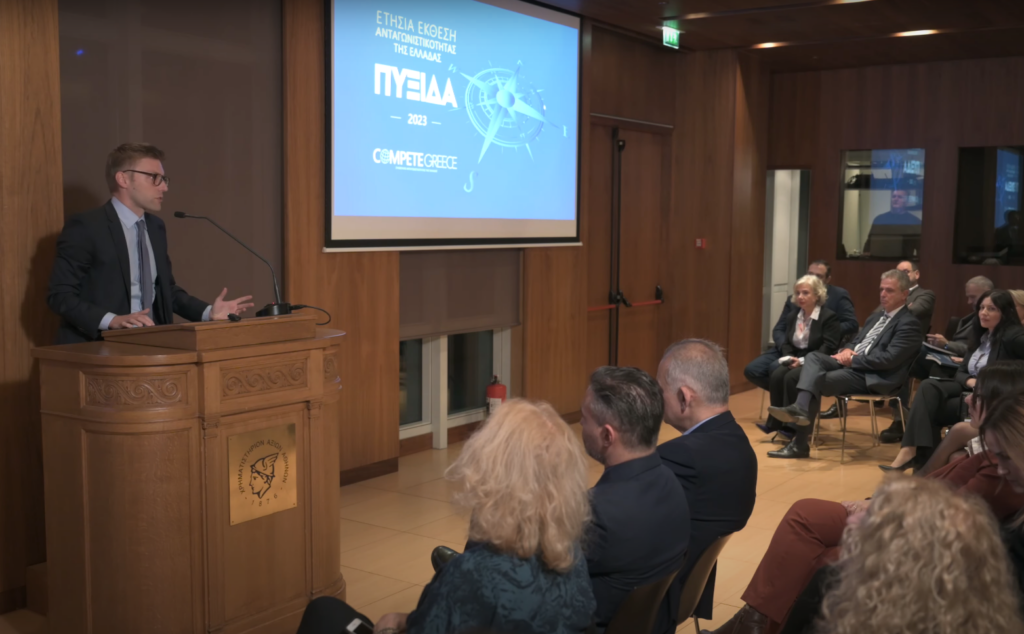 - Ομιλία στο Συμβούλιο Ανταγωνιστικότητας (7.12.2023) Χαίρετε και σας ευχαριστώ πολύ για την πρόσκληση σε μια εκδήλωση με τόσο ενδιαφέρον θέμα. Και είναι ιδιαίτερα ενδιαφέρον γιατί μπορεί να μιλάμε συχνά για ανταγωνιστικότητα, όμως σπάνια αναφερόμαστε πιο αναλυτικά στις επί μέρους διαστάσεις της. Και αυτό ακριβώς είναι που κάνει η συγκεκριμένη Έκθεση. Διότι μεταξύ άλλων συγκεντρώνει ένα ευρύ φάσμα σχετικών δεικτών που παρέχουν μια ολοκληρωμένη εικόνα της εξέλιξης της ελληνικής οικονομίας – τόσο μεμονωμένα όσο σε σύγκριση με το διεθνές περιβάλλον. Και είναι ιδιαίτερα σημαντικό ότι φωτίζει διαστάσεις της ανταγωνιστικότητας που συχνά δεν προβάλλονται ιδιαίτερα. Ενδεικτικά αναφέρω ότι σύμφωνα με τον Renewable Energy Country Attractiveness Index (RECAI) της ΕΥ, τον δείκτη για την ελκυστικότητα της χώρας για επενδύσεις σε ΑΠΕ (προσαρμοσμένο βάσει ΑΕΠ), η Ελλάδα εμφανίζεται πρώτη στον κόσμο. Αυτό νομίζω ότι είναι κάτι που οι περισσότεροι δεν το έχουμε υπόψη μας και σίγουρα δεν είναι κάτι πουθα θεωρείτο ιδιαίτερα πιθανό πριν κάποια χρόνια. ΑνταγωνιστικότηταΣε τι πλαίσιο συζητάμε λοιπόν σήμερα για την ανταγωνιστικότητα; Μια πρώτη προφανής απάντηση είναι ότι οι συνθήκες είναι ευνοϊκές. Η οικονομία εκτιμάται ότι θα αναπτυχθεί με το 2023 με τετραπλάσιο ρυθμό από αυτόν της ευρωζώνης. Οι εξαγωγές μας ως ποσοστό του ΑΕΠ αυξάνονται κατακόρυφα και πλησιάζουν τον ευρωπαϊκό μέσο όρο και έχουμε ρεκόρ στις Άμεσες Ξένες Επενδύσεις οι οποίες διπλασιάστηκαν συνολικά από το 2018 στο 2022, Όλα αυτά είναι δεδομένα καλές εξελίξεις, ειδικά αν σκεφτεί κανείς πού βρισκόμασταν μερικά χρόνια πριν. Δεν λένε όμως ολόκληρη την ιστορία. Διότι η οικονομία μας δεν αναπτύσσεται απλά, αλλά έχει αρχίσει μια διαδικασία μετασχηματισμού. Και αυτό αποτελεί μια σαφή ένδειξη ενίσχυσης της ανταγωνιστικότητας. Κάποιες ενδεικτικές τάσεις: - Η συνεισφορά της βιομηχανίας στο ΑΕΠ της χώρας (σε όρους Ακαθάριστης Προστιθέμενης Αξίας) αυξήθηκε κατά 27% από το 2019 στο 2022.